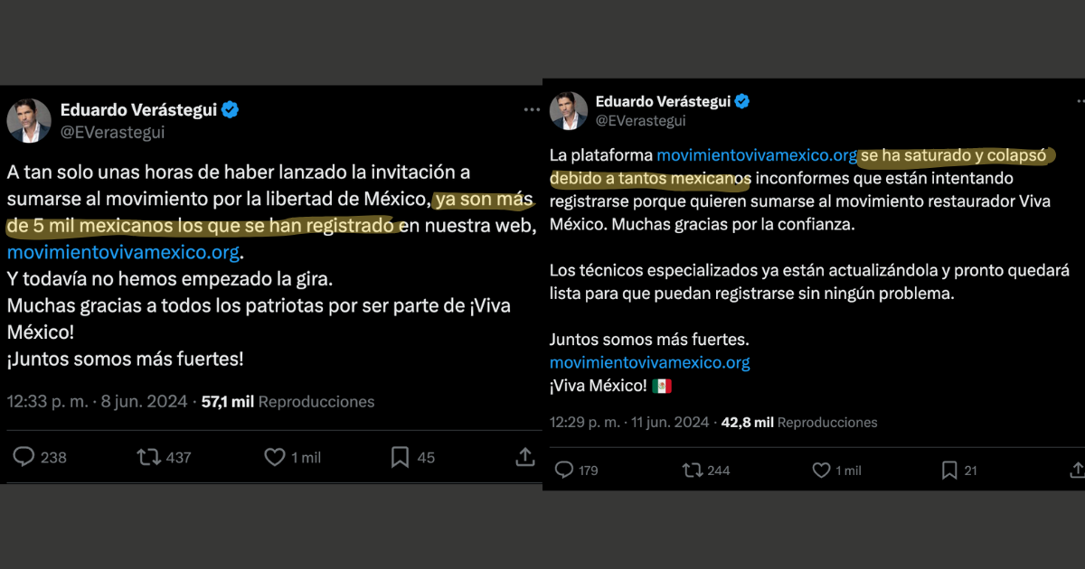 Si bien, no es posible saber cuántas personas se han registrado hasta el momento, el ex-actor y productor señaló en su cuenta personal de X que tras un día de lanzamiento, el movimiento Viva México contaba ya con 5 mil suscriptores y que había colapsado la plataforma por exceso de demandas. Es notorio decir que a la fecha de publicación de este reportaje, la información dicha por Verástegui no ha podido ser corroborada.