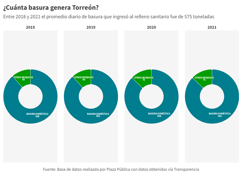 En ese mismo año en Torreón ingresaron 213 mil 337 toneladas, de acuerdo con los datos contenidos en la respuesta a la solicitud 0051260800035922, efectuada en septiembre de 2022 por el ciudadano Pedro Ramírez Ramírez y disponible en la Plataforma Nacional de Transparencia.