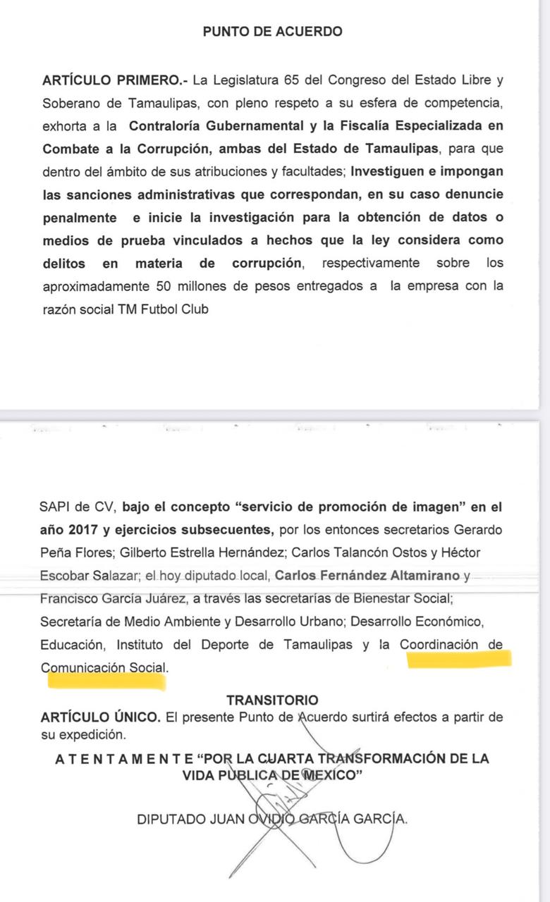 Este caso fue ventilado en las conferencias mañaneras del ex presidente López Obrador, del 30 de junio y el 9 de diciembre de 2022, donde se detallaron los pagos realizados a través de diversas secretarías al Tampico-Madero Futbol Club.