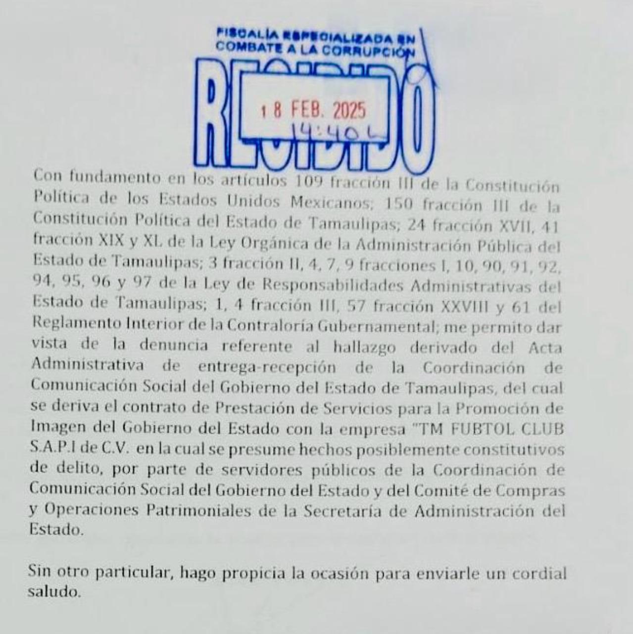 Por esta irregularidad en el ejercicio de recursos públicos, ya existen denuncias ante la Fiscalía Especializada en Combate a la Corrupción, identificadas en los expedientes AI-OG/013/2023, AI-OG/043/2023 y AI-OG/044/2023, una de ellas fechada el 18 de febrero de 2025, sumando un desvío superior a los 560 millones de pesos.