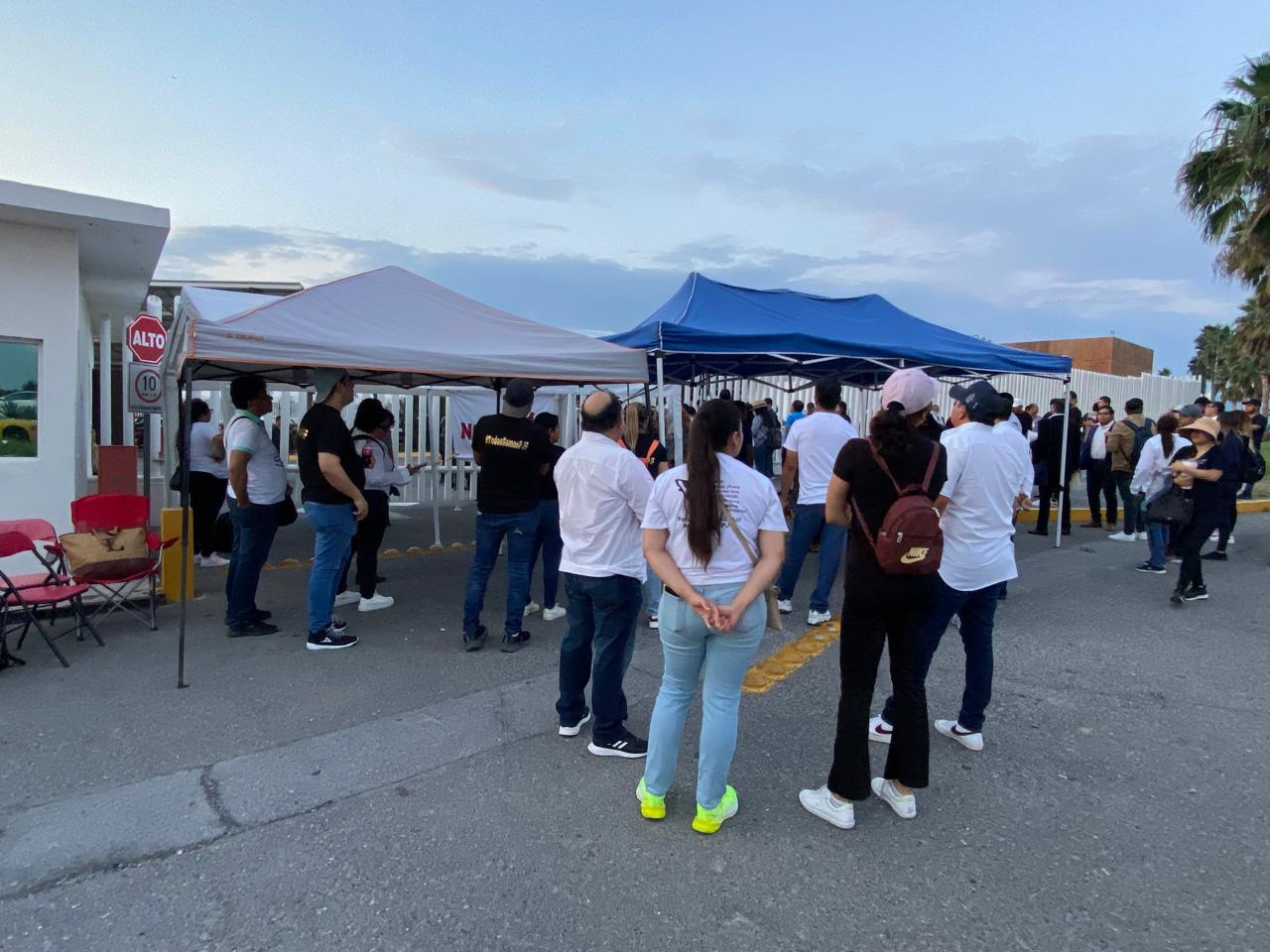 Entre gritos de consignas a la reforma, con cartulinas y mantas, algunos trabajadores que habían pernoctado en el lugar, pedían a los legisladores que llegaban, que les permitieran entrar a una comisión de cuatro, lo que no fue autorizado.