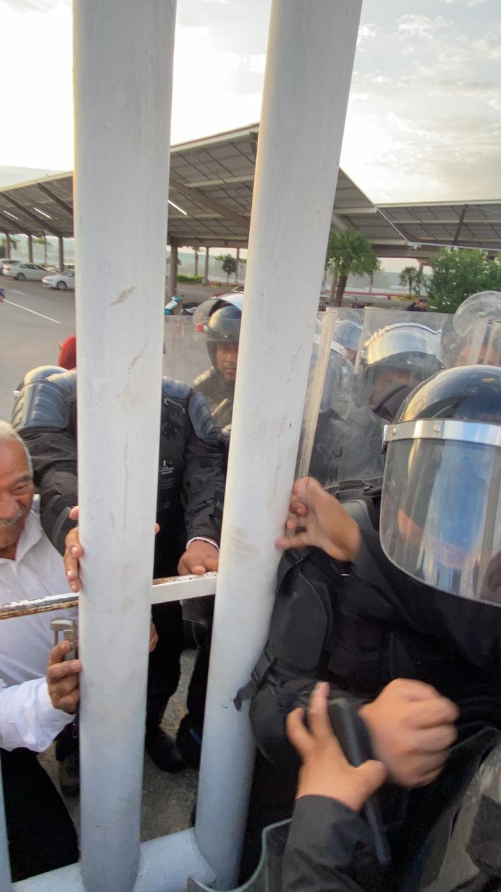Desde la mañana del miércoles que comenzaron a llegar trabajadores del Poder judicial a las afueras del recinto legislativo, se dispuso de policías antimotines que hicieron una valla por dentro, para evitar que los manifestantes ingresaran al recinto.