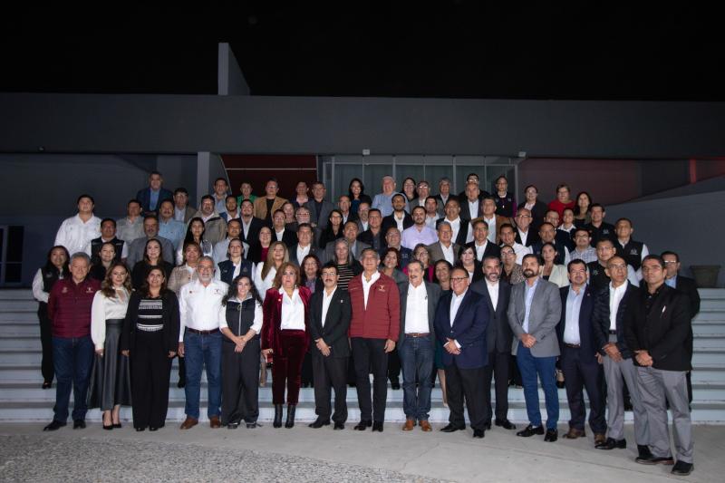 A este encuentro acompañaron al gobernador y al rector, los funcionarios del gabinete estatal, el secretario de Administración Dr. Jesús Lavín Verástegui; la contralora gubernamental, Dra. Norma Angélica Pedraza Melo; la titular de la Consejería Jurídica, Lic. Tania Contreras López; el coordinador general de Comunicación Social, Lic. Francisco Cuéllar Cardona; el jefe de la Oficina del Ejecutivo Estatal, Dr. Ricardo Gerardo Guerrero Morales; la secretaria del Trabajo, Lic. Olga Patricia Sosa Ruiz; la secretaria de Desarrollo Urbano y Medio Ambiente, Arq. Karina Lizeth Saldívar Lartigue; el secretario de Obras Públicas, Ing. Pedro Cepeda Anaya, entre otras autoridades.